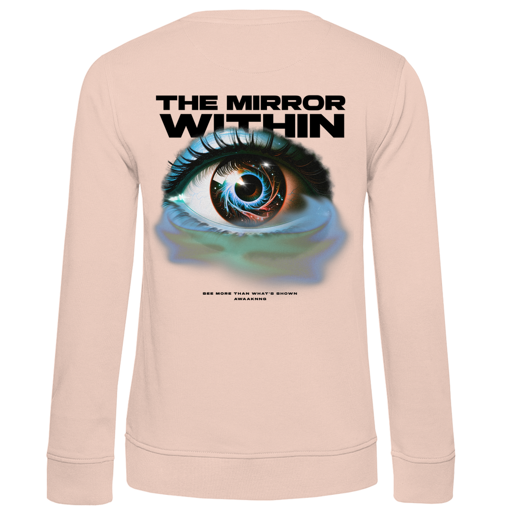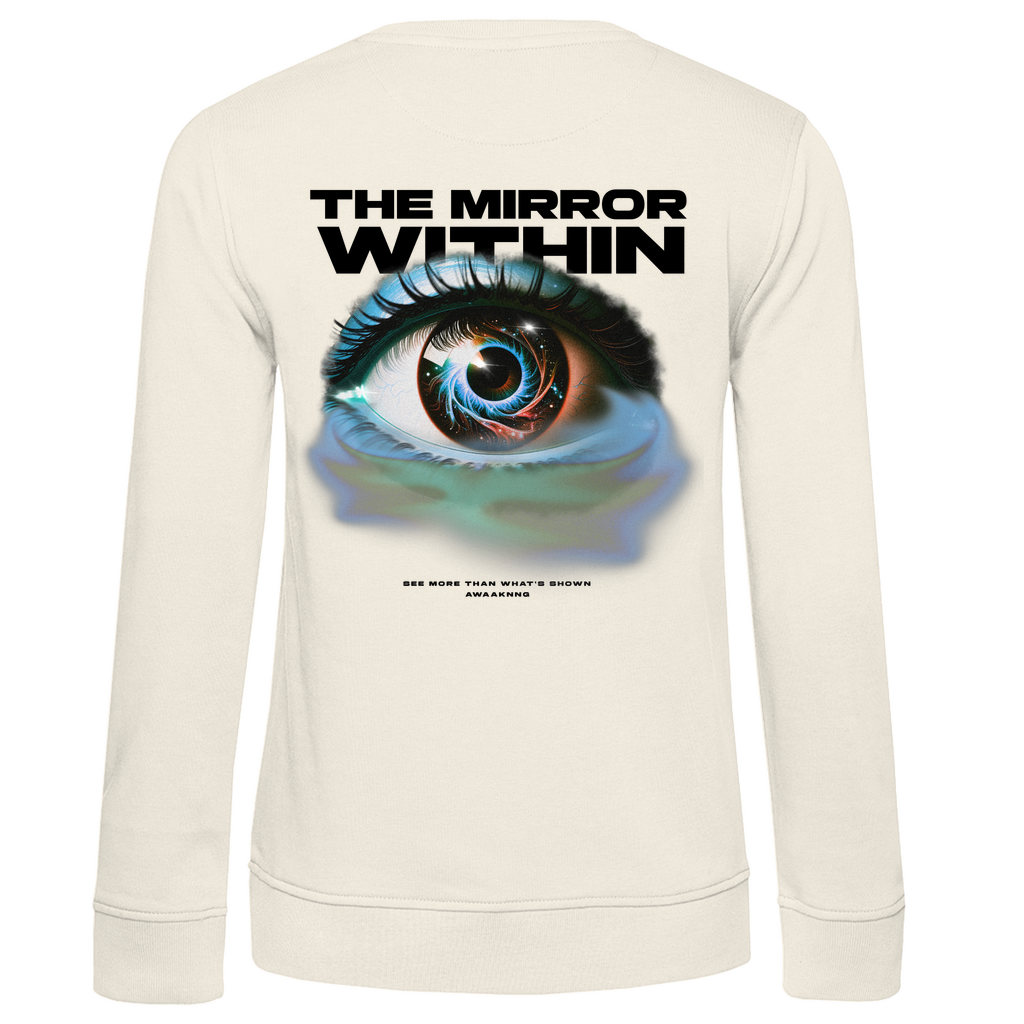 Das Awaaknng Damen Sweatshirt verbindet minimalistischen Stil mit tiefer Symbolik. „The Mirror Within“ erinnert dich an deine innere Wahrheit – ein Statement für Bewusstsein, Klarheit und Selbstannahme.
